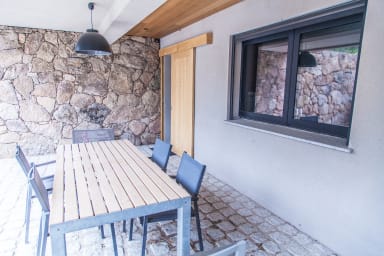 A 10min de Porto Vecchio et de la plage de Saint Cyprien, cet appartement chic et neuf de 90m2 vous accueillera confortable.