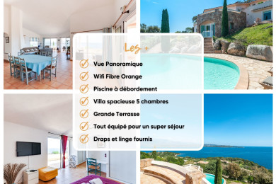 Villa avec vue panoramique sur le golfe de porto-vecchio. Grande Villa 5 chambres climatisée avec grande terrasse et piscine à bord debordant
